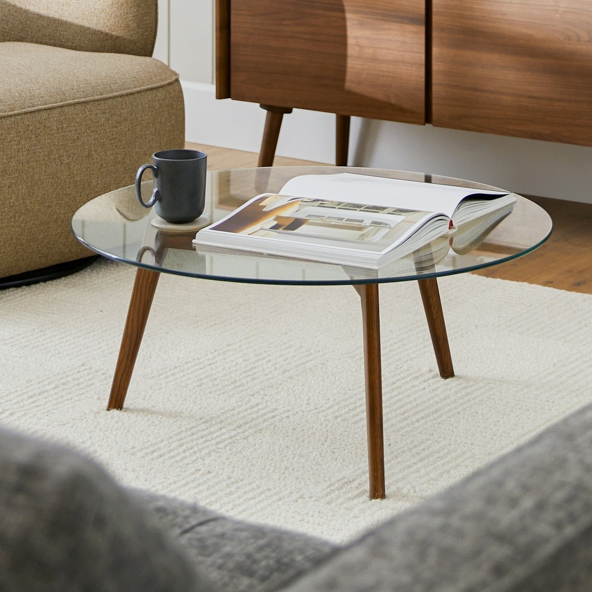 It’s crystal clear. This glass-topped table avoids clutter and adds an open, airy feel to your space. The unique solid wood leg design will also always be in clear view. Mix and match with marble and solid wood tables.